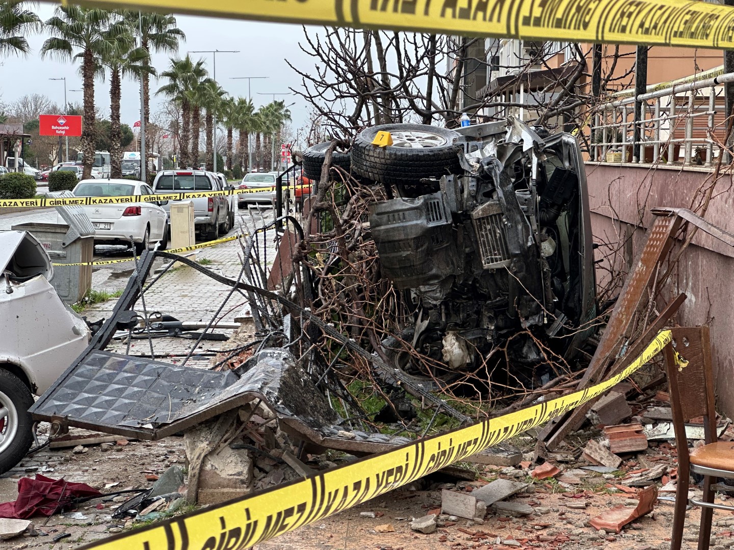 İzmir'in Ödemiş ilçesinde, sürücüsünün kontrolünü yitirdiği kamyonet park halindeki 2 araca, ardından kaldırımdaki R.Y.'ye (68) çarpıp, bir apartmanın bahçesine girdi. Kazada 5 kişi yaralanırken, o anlar, bir iş yerinin güvenlik kameralarına yansıdı.