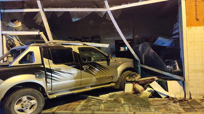 Bengisu Mahallesi Gazi Caddesi'nde seyreden Buse M. idaresindeki 35 ZOD 73 plakalı pikap, Türkocağı Sokağı'na dönerken, önce park halindeki motosiklete çarptı, ardından bir tüp bayisinin deposuna girdi.