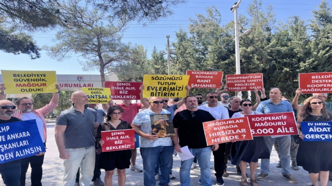 Kooperatif soruşturması kapsamında tutuklu bulunan CHP İzmir İl Başkanı Şenol Aslanoğlu ile eski İzmir Büyükşehir Belediye bulunduğu Buca Ceza İnfaz Kurumu önünde toplanan grup, "Belediyeye güvendik, mağdur olduk", "Mağdurlar burada, hırsızlar nerede?" yazılı pankartlar taşıdı.