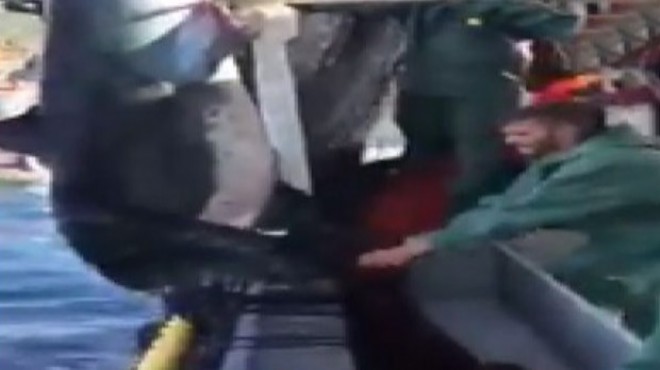 Sosyal medya hesabında yayınlanan görüntülerde, balıkçıların ağlardan kurtardıkları köpek balığını yeniden Marmara Denizi'ne bırakırken bir kişinin denizden çektikleri köpek balığına tekme ve yumruklarla birkaç kez vurduğu görüldü.