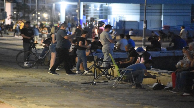 Koronavirüsle salgınıyla mücadele kapsamında uzmanlar, vatandaşları sosyal mesafe kuralına uymaları ve maske takmaları konusunda uyarmasına rağmen İzmir'de yine bildik görüntüler oluştu. Hafta içi olmasına rağmen 25 dereceyi aşan hava sıcaklığını fırsat bilen İzmirliler, akşamüstü saatlerinden itibaren Kordonboyu'na gelmeye başladı. Saatler geçtikte kalabalık artarken, geçen günlerdeki görüntüler yine yaşandı.