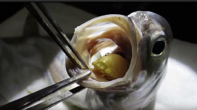Levrek, çipura, palamut, karagöz gibi hem yüzey, hem de dip balıklarının dillerine, boyları 2 milimetre civarındayken yapışan ve yapıştığı dildeki kanı emerek beslenen 'İsopoda' ailesine mensup bazı parazit türleri, internette ya da reel yaşamda ilk defa karşılaşanları şaşırtıyor. Ege Üniversitesi Su Ürünleri Fakültesi Öğretim Üyesi Prof. Dr. Haşmet Çağırgan, balıkların dillerinde yuva yapan bu tür parazitlerin görüntülerinin hamam böceğini andırdığını belirterek, "Bu tür parazitlere bizler de balıkçılar da yabancı değil. Hem yüzey, hem de dip balıklarında sıklıkla karşılaştığımız bir durum. Larva halindeyken yapıştıkları dillere kancalarını geçirirler ve dildeki kanı emerek hayatta kalırlar. Kimisi 3- 4 santimetrelik boya ulaşır. İnsan sağlığı açısından herhangi bir olumsuz durum oluşturmazlar. Zaten balıkçılar, bunlara artık alıştıklarından, hemen bir pense ya bıçak gibi aletle paraziti çıkarırlar ve işlerine devam ederler" dedi.