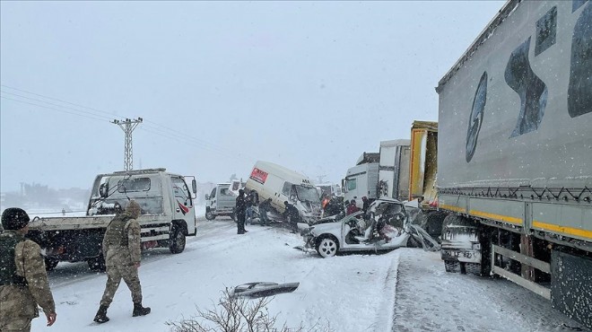 Kar yağışının etkili olduğu Kızıltepe-Nusaybin kara yolunun kırsal Eymirli Mahallesi mevkisinde sürücülerinin kimliği ve plakaları henüz öğrenilemeyen 4 tır, 1 yolcu otobüsü, ticari araç ve 2 otomobilin karıştığı trafik kazası meydana geldi.