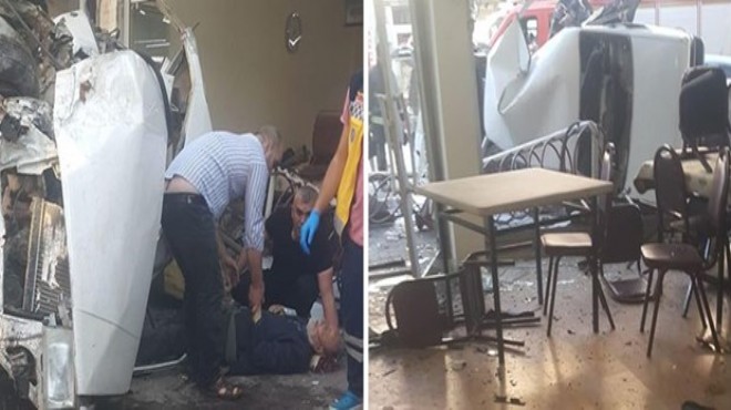 Kontrolden çıkan otomobil önce tak attı, ardından savrulup cadde üzerindeki kahveye daldı. Hurdaya dönen araçta sürücü Mensur U. ile otomobilin daldığı kahvehanede çalışan çaycı Esin S. yaralandı.