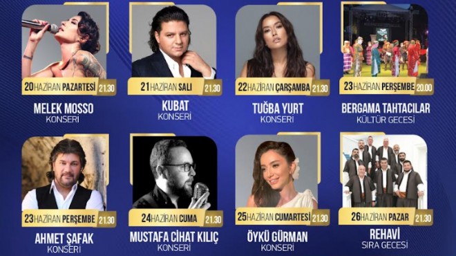 20-26 Haziran tarihlerinde Asklepion Antik Tiyatro, Cumhuriyet Meydanı, Arasta, Kültür Merkezi ve Kozak Yaylası’nda düzenlenecek olan etkinliklerde Türkiye’nin gözde sanatçıları sahne alacak.