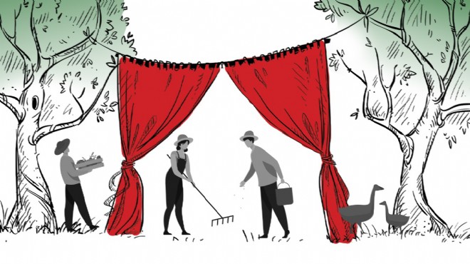 Köy Tiyatroları Buluşmaları "Sanata dokunan ellerde kir barınmaz" sloganıyla dört gün boyunca Urla, Seferihisar, Foça, Aliağa, Ödemiş ve Menderes’te yapılacak. Her köy kendi hikâyesinden yola çıkarak köy seyirlik tarzı oyunları seyirciyle buluşturacak.