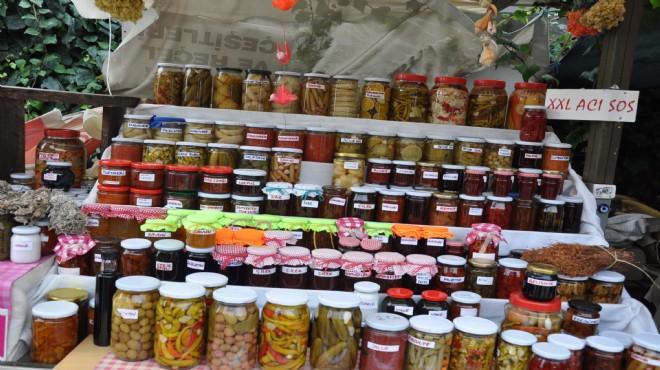 İzmir'in Çeşme ilçesi Ildır Mahallesi'nde yaşayan ev kadınları, hem üretiyor hem de ev ekonomilerine katkı sunuyor. Kadınlar, mahallelerinde yetişen her meyve ve sebzenin reçelini, turşusunu yapıyor. Özgün Işık (38) ile Fatma Yavuz (35), 60'a yakın reçel ve turşu yaptı. Farklı lezzetleri tezgaha koyarak müşterinin beğenisine sunan kadınlar, bu lezzetlerle şifa da dağıtıyor. Özgün Işık, bölgeye ait dağ çileği, mandalina, bardacık inciri, kavun, karpuz, hurma reçelleri, gelincik çiçeği reçeli, yaban mersini sirkesi yaptı. Işık ayrıca mandalina turşusu kurdu, ebegümeci çiçeğinin reçelini yaptı. Işık, "Bu reçel çok faydalı. Grip, nezle ve öksürüğe iyi geliyor" dedi.