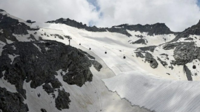 Kayak sezonu sona erdiğinde, bilim insanları güneş ışınlarını engelleyen beyaz bir muşamba kullanarak buzuldaki erimeyi durdurmaya çalışıyorlar.
