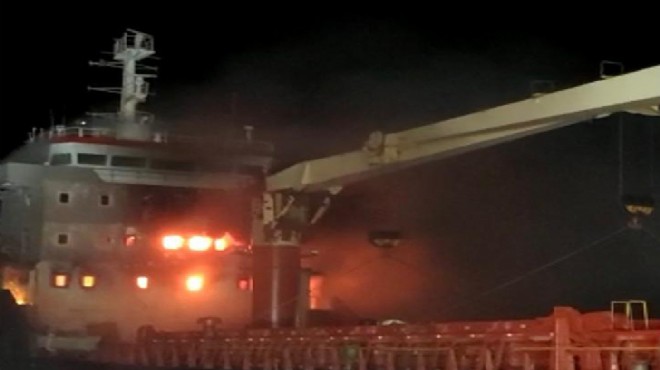 Gemideki yangını söndürme çalışmaları sürüyor.