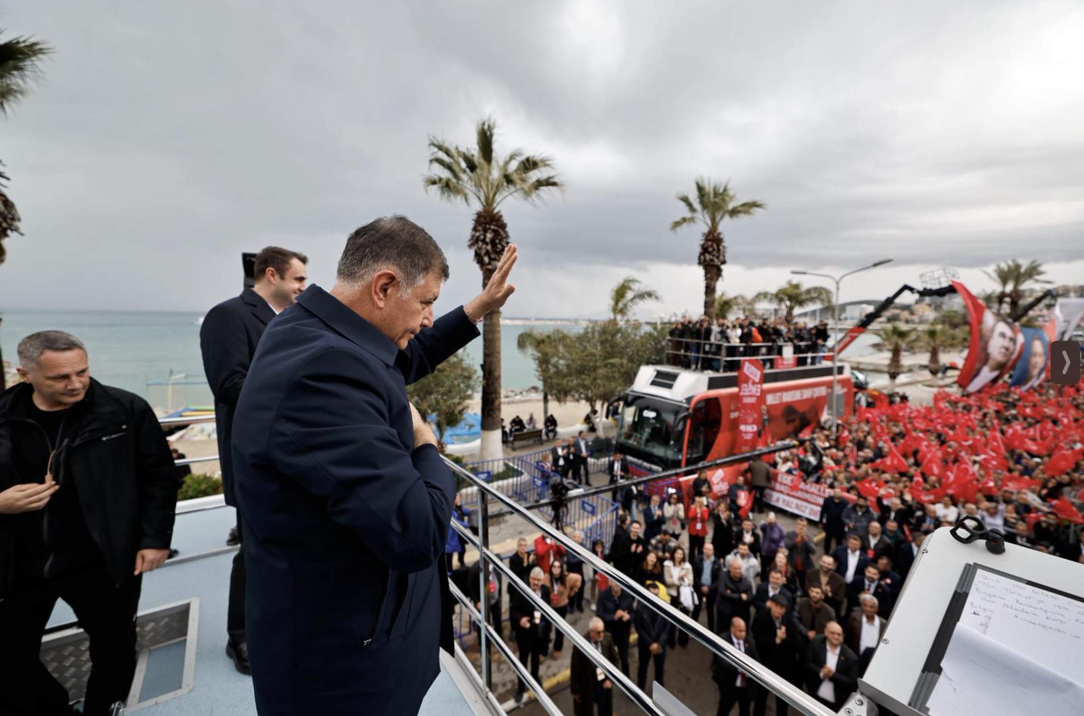 "Bugün Kuşadası'ndayız. Genel başkanımız Özgür Özer'in liderliğinde 101. mitingimizi yaptık. Çok güçlü bir katılımla, bu kadar yağmurun altında, kıymetli vatandaşlarımızın buraya katılmasıyla beraber iktidar yürüyüşümüze devam edeceğimizi tüm halkımıza, tüm milletimize göstermiş olduk. Ömer başkanımıza da buradan geçmiş olsun dileklerimizi iletiyoruz. Bizler mücadelemize devam edeceğiz. Tüm halkımıza buradan selamlarımızı gönderiyoruz."