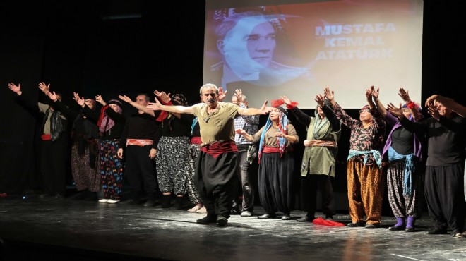Konak Belediyesi’nin 29 Ekim haftası boyunca her gün yeni bir etkinlikle taçlanan Cumhuriyet Bayramı kutlamaları, bu kez İzmirlilere tiyatro keyfi yaşattı. Dr. Selahattin Akçiçek Kültür Merkezi Avni Anıl Sahnesi’nin ev sahipliği yaptığı “Kuvayi Milliye Destanı” ayakta alkışlandı. Sarı Zeybek Kültür ve Sanat Derneği Tiyatro Topluluğu tarafından sahneye taşınan, Nazım Hikmet’in kaleminden ulusal kurtuluş mücadelesinin destansı hikayesini anlatan oyun duygusal anlar yaşattı. Kalabalık kadrosuyla dikkat çeken oyunu Ayla Taşdelen yönetti. Türkiye Cumhuriyeti’nin kuruluşluna giden yolda yaşanan zorluklara rağmen Kuvayi Milliye ruhuyla memleketin yeniden doğuşunu anlatan oyun izleyenleri gururlandırdı. Seyirciden tam not alan “Kuvayi Milliye Destanı” dakikalarca alkışlandı.