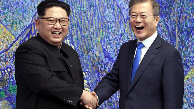 "Düşman kardeşler" olarak bilinen iki ülkenin liderleri el ele tutarak Kuzey'den tekrar Güney'e geçtiler. İki lider arasındaki görüşmeler devam ederken taraflar ortak bir deklarasyona imza attı.