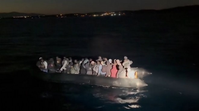 İzmir'in Çeşme ilçesi açıklarında lastik botla sürüklenen 37 düzensiz göçmen kurtarıldı.