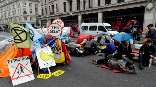 Eylemciler önceki gün Londra'nın en işlek noktalarından Marble Arch, Oxford Circus, Piccadilly Circus ve Waterloo Köprüsü ile İngiliz parlamentosunun önündeki Parlamento Meydanı'nı işgal edip trafiğe kapatmıştı.