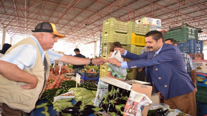 Küçük çiftçinin kendi ürünlerini sattığı Torbalı’nın organik pazarında, Prof. Dr. Hasan Kalyoncu’nun sebze tezgahının başına geçmesi ile, bir anda pazarın gözdesi patlıcan ve kabak oldu. Satışlardan memnun olan esnaf, milletvekili adayına teşekkür etti.