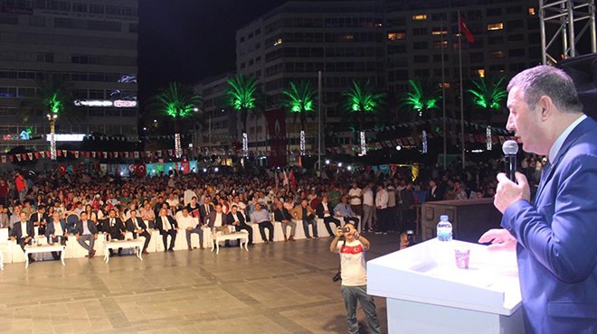 Konuşması sık sık alkışlarla kesilen İl Başkanı Karataş, İP Genel Başkanı Meral Akşener’e de yüklendi. Karataş şöyle konuştu; “Bir de bir hanımefendi var ‘15 Temmuzdan sonra Başbakan olacağım’ diyordu. Hani ne oldu. Milletin sillesini yedi ama hala akıllanmadı. Diyor ki, HDP’li Selahattin Demirtaş da eşit şartlarda seçime katılmalıymış, yazıklar olsun! Hangi eşit şartlar. Sen hangi zihniyetle İçişleri Bakanlığı yaptın? Sen hiç şehit görmedin mi? Yetim ve öksüzleri, şehit analarını görmedin mi? Onlar eşit şartlarda mıydı? Bu yaptığınız ihanet yolunda ilerlemektir. Siz de cevabınızı alacaksınız. İzmirliler bölücülerle hareket edenlere yol verecektir.”