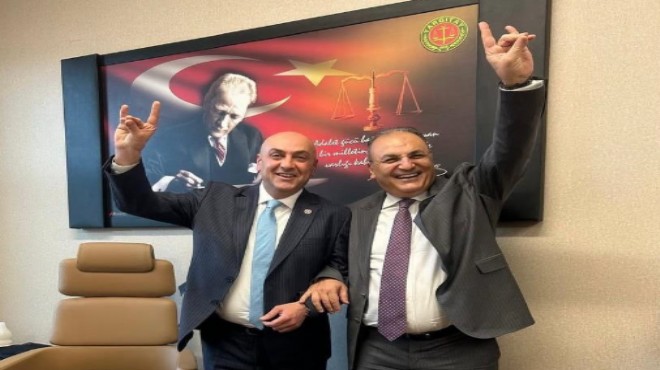 Ankara İki Nolu Baro Başkanı ile bozkurt işareti yaparak poz veren,