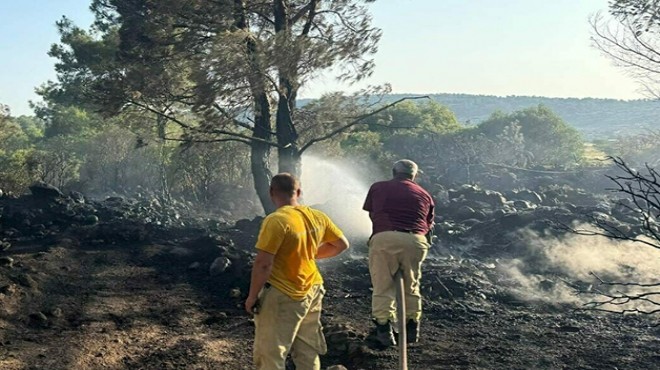 Urla ilçesi Uzunkuyu Mahallesi'nde 8 Haziran'da orman yangını çıktı. Ekiplerin müdahalesiyle yangın söndürüldü. Ancak yangın nedeniyle yaklaşık 2 dönümlük alanda birçok kızılçam ağacı zarar gördü. Jandarma, yangınla ilgili inceleme başlattı. Jandarmanın araştırmasında yangına, ormana bitişik arazide mangal yakan D.Ç.'nin neden olduğu belirlendi. D.Ç., dün gözaltına alındı. Jandarmadaki işlemlerinin ardından bugün adliyeye sevk edilen D.Ç., tutuklandı. (DHA)