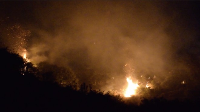 Yangın kontrol altına alınırken, ekiplerin çalışmaları sürüyor. (AA)