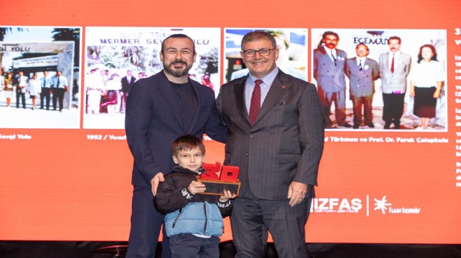 Başkan Tugay törende Marble İzmir’in gelişmesinde katkısı olan, 1991 yılında bir trafik kazasında hayata veda eden Ege Maden İhracatçıları Birliği’nin Kurucu Başkanı Yusuf Türkmen’in kendi adını taşıyan torunu Yusuf Türkmen ve Prof. Dr. Faruk Çalapkulu başta olmak üzere 44 firmaya 30. Yıl yazılı plaket takdim etti.