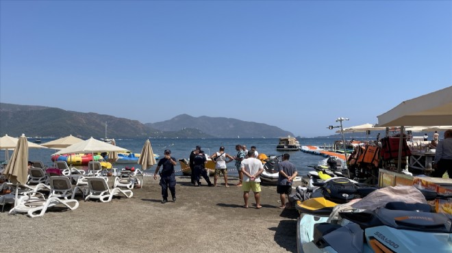 Marmaris Emniyet Müdürlüğü ile Sahil Güvenlik Güney Ege Grup Komutanlığı olay yeri inceleme ekipleri su sporlarını istasyonuna çekilen sürat teknesinde ve kaza yerinde körfezde alargada bekletilen dolmuş teknede incelemede bulundu. (AA)