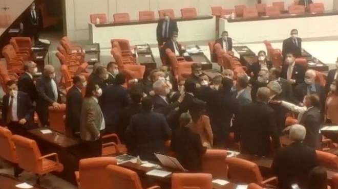 MHP ve HDP'li milletvekilleri birbirinin üzerine yürüdü. Kavganın büyümesini, CHP'li milletvekilleri önledi.