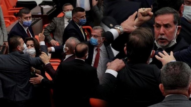 İki parti arasındaki söz dalaşı önce arbedeye sonra da kavgaya dönüştü. Yaşanan olaylar üzerine Meclis Başkan Süreyya Sadi Bilgiç, oturuma ara vermek zorunda kaldı. Dakikalarca süren arbedede koronavirüs önlemleri, maske ve mesafe de unutuldu.