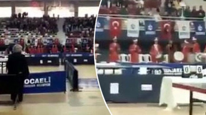 Kocaeli Büyükşehir Belediyesi tarafından Şehit Recep Topaloğlu Spor Salonu'nda düzenlenen 'Okullararası Masa Tenisi Şampiyonası'nda İstiklal Marşı, mehter takımınca ilahi gibi seslendirirken, salondakiler de saygı duruşunda bulundu. Mehter takımının, İstiklal Marşı'nı ilahi gibi seslendirmesi tepkilere neden oldu.