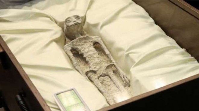 Sunuma katılan "UFO" araştırmacısı Jaime Maussan, bilim insanları ile beraber Kongre önünde "insan olmadığı" iddia edilen iki "fosilleşmiş cesedin" kalıntılarını sundu.