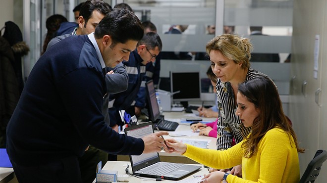 İZMİR - Menderes Belediyesi'nde görev yapan yaklaşık 500 taşeron işçi, kadrolu işçi olabilmek için İnsan Kaynakları Müdürlüğüne müracaat etti.