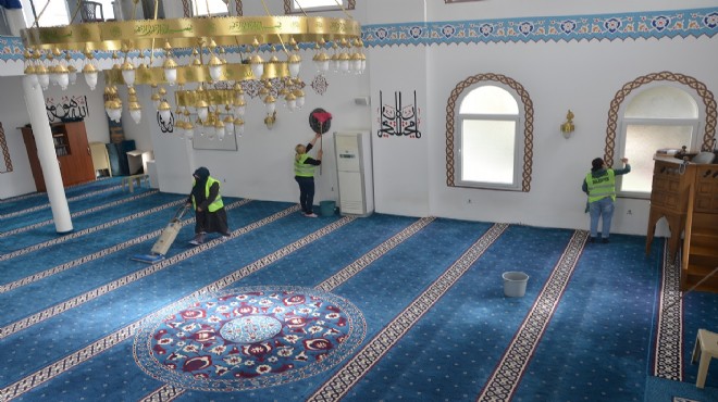 Menderes Belediyesi Temizlik işleri müdürlüğüne bağlı ekipler, ilçe genelindeki camilerde halıları süpürüp, tuvaletleri temizleyerek dip köşe temizlik yaptı.