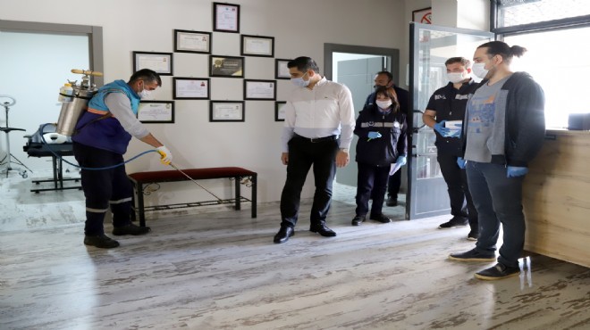 Menderes Belediyesi tarafından koronavirüs ile mücadele kapsamında gerçekleştirilen çalışmalar tüm hızıyla devam ediyor. Salgına karşı kurulan özel ekip dezenfektasyon çalışmalarını aralıksız sürdürüyor. Açıklanan genelge ile 11 Mayıs tarihinde yeniden faaliyete geçecek berber, kuaför ve güzellik salonlarında da dezenfektsayon işlemleri Menderes Belediyesi tarafından gerçekleştirildi.