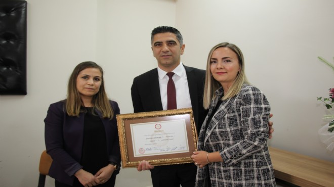 İlçe Seçim Kurulu Başkanı Rabia Taş'ın elinden mazbatasını alan Kayalar, Menderes Cumhuriyet Meydanı’ndaki Atatürk Anıtı’na çelenk sunduktan sonra makamına oturdu.