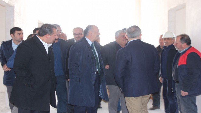 Müezzinoğlu buluşma öncesi Menderes Belediye Başkanı Bülent Soylu ve AK Parti İzmir Milletvekili Kerem Ali Sürekli ile birlikte yapımı süren Menderes Devlet Hastanesi’nde incelemelerde bulundu.