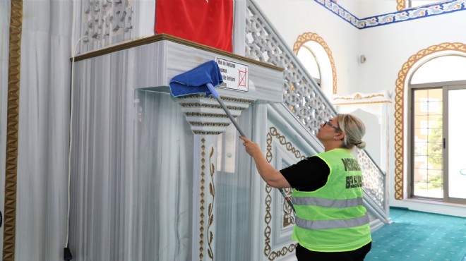 Menderes Belediyesi tarafından Kurban Bayramı öncesi vatandaşların ibadetlerini hijyenik koşullarda ve huzurlu bir şekilde yapılabilmesi için camilerde bakım ve temizlik çalışması yapıldı.