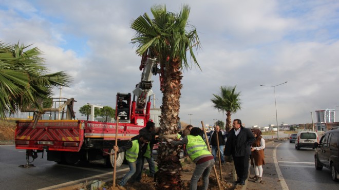 Menderes Belediyesi’nin Karayolları Bölge Müdürlüğü ile birlikte yürüttüğü çalışmalar kapsamında Menderes Çevreyolu Peyzaj Çalışmaları hızla sürüyor. Çalışma kapsamında sulama tesisatının tamamlandığı projede ilk palmiyelerde dikildi. Menderes Belediye Başkanı Bülent Soylu da dikim çalışmalarında yer aldı.