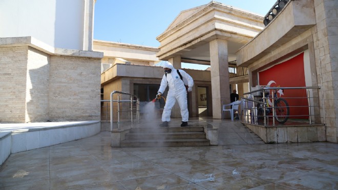 Temizlik işleri müdürlüğü tarafından yürütülen çalışmalar kapsamında ilçe genelindeki belediye işletmeleri, parklar, okullar, dolmuşlar ve camilerde dezenfeksiyon çalışmaları arttırıldı. Özel olarak kurulan ekip tüm gün boyunca ilçenin her noktasında çalışmalarını sürdürüyor.