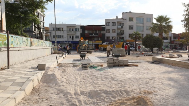 Menderes’te meydan ve kaldırım düzenlemesi projesinin ilk etap çalışmaları hız kazandı.