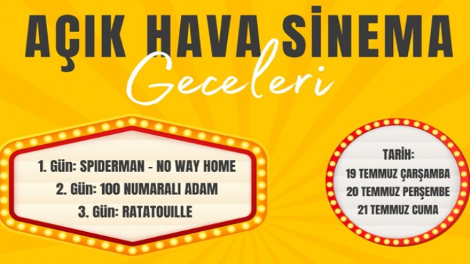 19-21 Temmuz tarihleri arasında ki etkinlik her akşam 20.45’de başlayacak. 19 Temmuz Çarşamba günü Spiderman-No Way Home, 20 Temmuz Perşembe günü 100 Numaralı Adam ve 21 Temmuz Cuma günü Ratatouille filmleri izleyicilerle buluşacak.