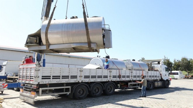 Menderes Belediyesi tarafından Hataylı süt üreticisine destek olmak amacıyla 2 adet süt tankı deprem bölgesine hibe edildi.