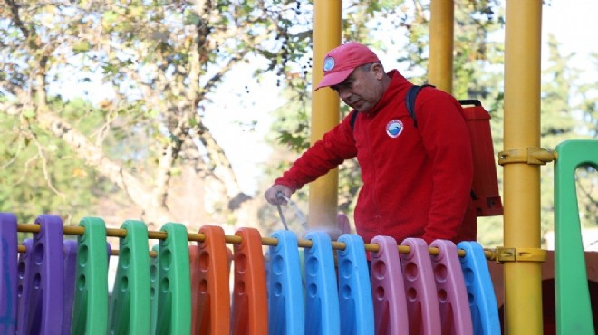 Çalışmalar hakkında konuşan Menderes Belediye Başkanı İlkay Çiçek, “Çocuklarımızın sağlığı ve geleceğine verdiğimiz önemi her defasında ifade ediyoruz. Gelen kış ayları ile birlikte artan salgın hastalıkların yayılımını azaltmak adına parklarımızı dezenfekte ettik. Çocuklarımız için daima gereken özeni göstermeye devam edeceğiz” dedi.