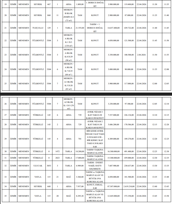İŞTE SATIŞA ÇIKARTILAN TAŞINMAZLAR: