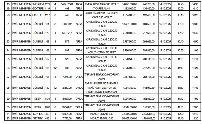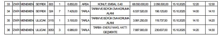 Satışa çıkan taşınmazların bir bölümü tarım ve 1. derece doğal sit, bir bölümü tarım ve büyük ova koruma alanı, bir bölümü konut alanı ve bir bölümü de ticaret alanı imarında bulunuyor.