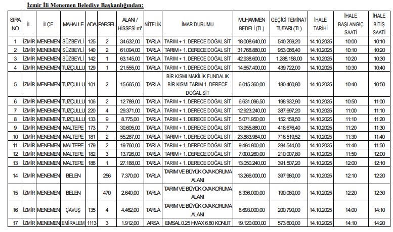 GERÇEKİZMİR - İzmir’in Menemen Belediyesi mülkiyetinde bulunan 36 taşınmazı ihale ile satma kararı aldı.