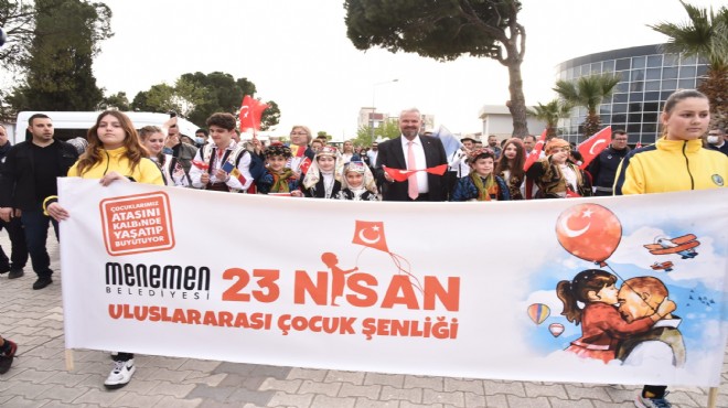 Menemen’de, 23 Nisan Ulusal Egemenlik ve Çocuk Bayramı kutlamaları, gerçekleştirilen kortej yürüyüşü ile başladı. Kosova ve Moldova’dan Menemen’e gelen çocukların da katıldığı kortej yürüyüşü, Menemen Belediyesi önünde başladı, Menemen Stadı’nda kadar devam etti. Renkli görüntülere sahne olan korteje, vatandaşlar da alkışlarıyla destek verdi.
