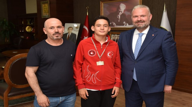 Menemen Belediye Başkan Vekili Aydın Pehlivan da gösterdiği üstün başarıdan dolayı Adar Kalay’ı tebrik ederek alnından öptü. Genç sporcuyla ve babası Gökhan Kalay ile sohbet eden Pehlivan, “Başarın bizi çok duygulandırdı ve gururlandırdı. Bizlere üstün başarılarınla ne kadar özel bir çocuk olduğunu gösterdin. Çok çalışacağından ve Dünya Şampiyonu da olacağından şüphe duymuyorum. Bizler Menemen Belediyesi olarak hep yanında olacağız” diye konuştu.