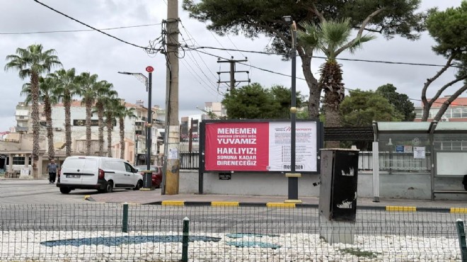 Menemen'in dört bir yanındaki reklam panolarına, "Menemen kimsenin çöplüğü değil! Yuvamız, haklıyız, sonuna kadar direneceğiz!" sloganıyla başlayan ve "Ege'nin en bereketli tarım arazilerine sahip olan Menemen, tarihinin en tehlikeli girişimiyle karşı karşıya! İlçemize her gün dökülecek binlerce ton çöp; tarımımızın, yer altı sularımızın, temizliğimizin, sağlığımızın ve geleceğimizin karanlığa hapsolması anlamına gelir. Bizler Menemenliler olarak atalarımızın emaneti ve evlatlarımıza miras olacak olan bu güzel kentin karanlığa teslim edilmesine izin vermeyeceğiz! Kadınlarımızla, çocuklarımızla, STK'larımızla, sanatçılarımız, basınımız, hukukçularımız, siyasilerimiz ve tüm hemşehrilerimizle birlikte Menemen dayanışması olarak bu haksız dayatmaya geçit vermeyeceğiz!" yazılı afişler asıldı. Tepkilere, Menemen Belediyesi ile birlikte muhtarlar, çevre sağlık ve toplum için çalışan dernekler, meslek odaları, ilçe halkı, gönüllü komiteleri, okullar, üniversiteler, öğrenci grupları, esnaf ve iş dünyası, doktor, hemşire ve sağlık kuruluşları, yerel basın ve medya temsilcileri, sanatçılar ve kültür grupları, avukatlar ve hukuk gruplarıyla siyasi parti temsilcileri destek verdi.
