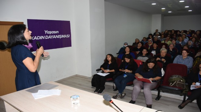 Menemen Belediye Başkanı Serdar Aksoy’un eşi, Sosyal Hizmet Uzmanı Dilek Yücel Aksoy’un katılımıyla gerçekleşen çalıştaya Menemen’in çeşitli mahallelerinden, iş kollarından ve meslek örgütlerinden kadınlar katılım gösterdi.