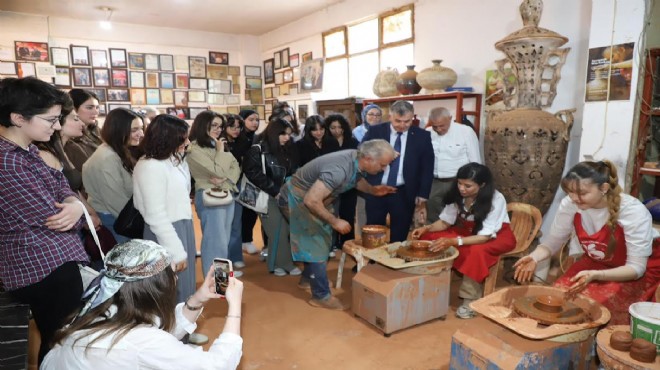 Program kapsamında öğrenciler, Menemen’in “Yaşayan İnsan Hazinesi” ödüllü ustalarından ve Menemen Çömlekçiler Derneği Başkanı Ahmet Taşomcu’nun atölyesini ziyaret etti. Ziyarette, yaklaşık 8 bin yıllık geçmişe sahip Menemen çömlekçiliği hakkında kapsamlı bilgiler aktarılırken, öğrenciler geleneksel üretim süreçlerini yerinde gözlemledi. Düzenlenen uygulamalı workshop çalışmasıyla katılımcılar, çömlek sanatının inceliklerini deneyimleme imkânı buldu.