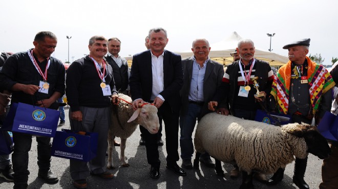 Yarışmalarda en güzel koç, en güzel koyun ve en güzel kuzu sahiplerine kupa, madalya, altın, sürmene bıçak seti ve Menemen’e özgü toprak testiden oluşan ödüllerini Menemen Belediye Başkanı Tahir Şahin, Menemen Ziraat Odası Başkanı Arif Metin Karagöl ve CHP Menemen İlçe Başkanı Hürol Kazım Taklak ile birlikte verdi.